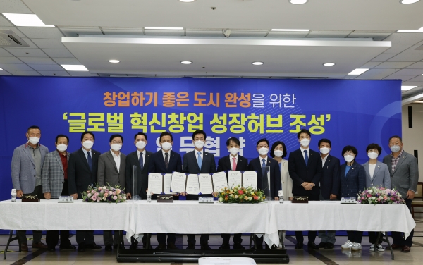 [충청뉴스큐] 대전광역시의회 권중순 의장은 23일 서구 월평동 한국마사회 대전지사 건물에서 열린 ‘글로벌 혁신창업 성장허브 조성 업무협약식’에 참석했다.