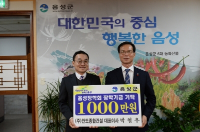 [충청뉴스큐] 지난 18일 음성군 음성읍에 소재한 ㈜안도종합건설 박철우 대표이사가 음성군청을 방문하여 음성장학회에 장학금으로 1천만원을 기탁했다.