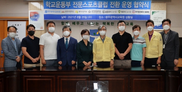 시교육청은 이를 위해 25일 ‘학교운동부 전문스포츠클럽 전환 운영 계약 및 협약식’을 개최했다.