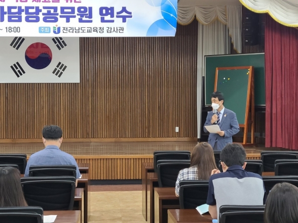 김성인 감사관은 “코로나19로 인해 활동에 제약이 많은 상황 속에서도 신뢰받는 청렴 교육행정 실현과 감사담당공무원으로서 본연의 임무에 충실하기 위해 마련된 뜻깊은 자리였다”며 “오늘 연수를 계기로 현장에서 보다 내실 있는 감사를 펼쳐 청렴 전남교육 실현에 앞장서주기 바란다”고 당부했다.