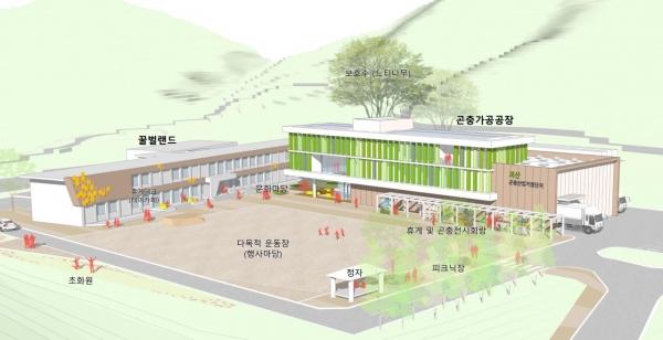 이곳에는 곤충사료 가공시설 곤충 홍보·판매관 R&D 시설 등 곤충제품 생산·가공 및 연구지원을 위한 다양한 시설물이 들어선다.