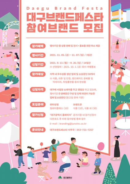 [충청뉴스큐] 대구시는 코리아세일페스타 동안 동대구역 광장에서 열릴 2021 대구브랜드페스타에 참여할 업체를 모집한다.