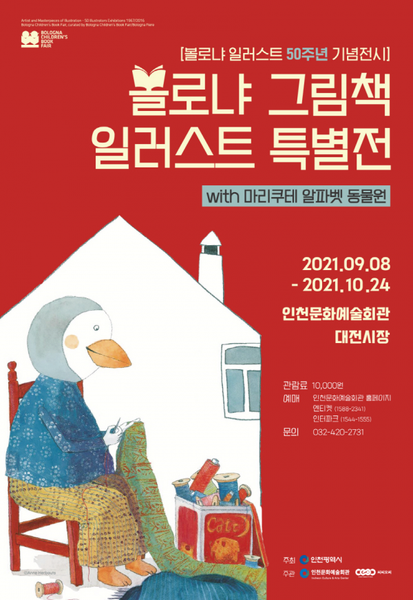 인천광역시는 유서 깊은 볼로냐 아동도서전 사무국의 공식 순회전인 ‘볼로냐 그림책 일러스트 특별전’이 9월 8일부터 10월 24일까지 인천문화예술회관 대전시장에서 열린다고 밝혔다.