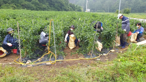[충청뉴스큐] 단양군의회 장영갑 의장 및 의원, 직원 등 15명은 지난 달 31일 본격적인 고추 수확철을 맞아 고령에 시각장애로 어려움을 겪고 있는 어상천면 한 농가를 찾아 일손을 보태며 구슬땀을 흘렸다.