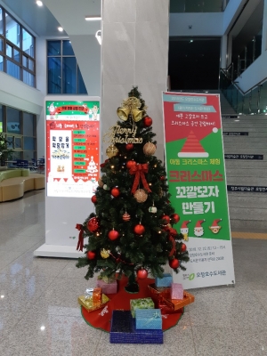 [충청뉴스큐] 오창호수도서관은 크리스마스와 연말을 맞이하여 도서관 로비에 크리스마스 트리를 설치하고 불을 밝혔다. 12월 초부터 로비에 등장한 크리스마스 트리는 도서관을 방문하는 이용자들에게 설렘과 따뜻함을 전하고자 직원들이 직접 하나하나 장식을 했으며 반짝이는 불빛에 어린이를 비롯한 이용자들의 마음을 환하게 밝혀주고 있다 .