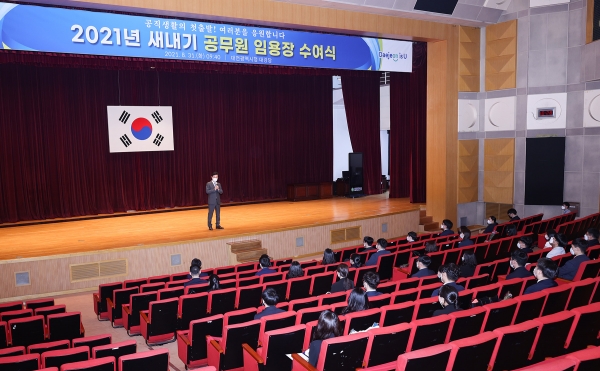 한편 대전시는 이번에 임용된 신규 공직자에게 시에서 직접 제작한 공직생활 도움서인 ‘2021 신규공직자 업무 길라잡이’ 책자를 배부했다.