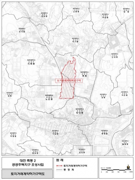 [충청뉴스큐] 대전시는 1일 유성구‘죽동2 공공주택지구 조성사업’ 후보지 0.85㎢에 대해 오는 9월 5일부터 2023년 9월 4일까지 토지거래허가구역으로 2년간 지정한다고 밝혔다.