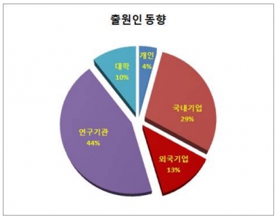 출원인별 동향을 살펴보면, 대학 및 연구기관이 54%, 국내기업이 29%, 외국기업이 13%, 개인이 4%를 출원한 것으로 조사됐다. 국내기업 중에는 포스코가 33%으로 가장 많이 출원한 것으로 나타났다. 국내연구기관 중에는 포항산업과학연구원이 62.5%으로 최다 출원한 것으로 파악됐고, 한국지질자원연구원이 10%로 그 뒤를 이었다.
