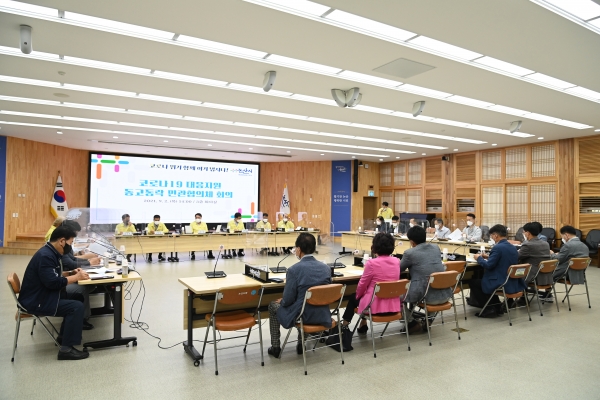 시는 2일 회의실에서 부시장을 협의회장으로 관내제조업 7개 단체, 서비스업 5개 단체, 외국인 근로자 관련 5개 단체와 논산경찰서 세무서 건강가정·다문화가족지원센터 등 유관기관이 참석한 가운데 ‘코로나 19 외국인 노동자 방역 선도모델 구축을 위한 동고동락 민관협의체 회의’를 열었다.