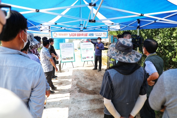 [충청뉴스큐] 당진시농업기술센터는 2일 순성면 일원에서 농촌진흥청 국립원예특작과학원 관계자, 순성농협 조합장, 고추연구회 회원 등이 참석한 가운데 고추 생력재배를 위한 ‘노지 고추 일괄수확 시연회’를 개최했다.