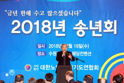 송한준 의장은 19일 오전 11시 수원 노블레스웨딩컨벤션에서 열린 ‘대한노인회 경기도연합회 2018 송년회’에서 축사를 통해 이 같이 말했다. 이날 행사에는 이종한 대한노인회 경기도연합회장과 회원 등 130여 명이 참석했다.