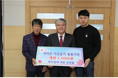 금산의 대표적인 향토 기업인 부자양계 영농조합은 지역의 소외된 이웃을 위해 매년 2회에 걸쳐 인삼계란 1,000판씩 기부하고 있다. 이날 기탁 받은 계란은 10개 읍면에 전달되어 기초수급자, 차상위, 사례관리가구 등 도움의 손길이 필요한 가정에 전달될 예정이다.