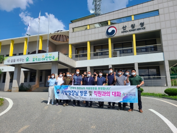[충청뉴스큐] 강대석 중부지방산림청장은 9월 3일 충주국유림관리소를 처음 방문해 당면현안 업무에 대해 청취하고 직원과의 소통시간을 가졌다.