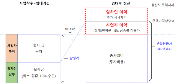 확정분양가격 이상의 시세차익이 발생할 경우, 이를 주택을 분양받는 임차인과 사업자가 공유하게 했다.
