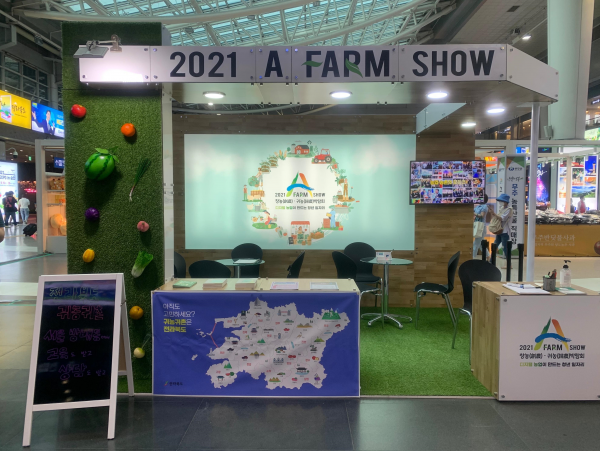 2021년 에이팜 박람회는 매년 개최하는 대한민국 창농귀농 박람회로 ‘디지털 농업이 만드는 청년 일자리’를 주제로 카카오톡 채널을 개설해 귀농귀촌 화상상담을 하고 서울 용산역에서 오프라인 홍보부스를 운영한다.