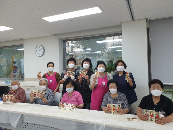 재능기부 강사로 보은군향토음식연구회원 8명이 나서 어르신들과 초콜릿을 만들면서 즐거운 시간을 보냈고 정성 들여 만든 초콜릿 일부는 코로나 19 극복에 힘쓰는 분들에게 전달했다.