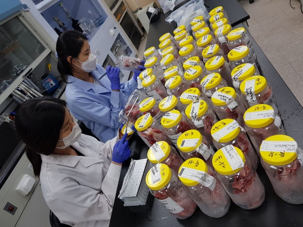 한편 보건환경연구원은 축산물 유통에 대한 소비자 신뢰를 높이기 위해 한우 확인검사를 강화하고 대전시 학교급식센터와 협력해 학교급식용 쇠고기에 대한 한우 확인검사도 확대 할 계획이라고 전했다.