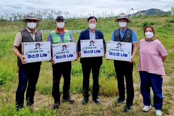 이번 마스크 전달은 중소 협력업체의 코로나-19 극복에 동참하고 미화·조경 등 현장 근로자들을 보호하기 위해 진행됐다.