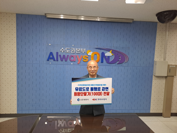 인천광역시는 9월 6일 한국도로공사 수도권본부와 국가보훈대상자 및 유가족의 유료도로 통행료 감면 혜택을 제공하기 위해 ‘희망단말기’ 무상지원을 위한 업무협약을 체결했다고 밝혔다.