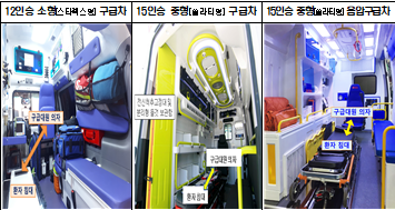 현재 우리나라에서 운영되고 있는 12인승 소형 구급차는 환자실이 좁고 구급대원 의자가 환자 침대 뒤쪽이 아닌 대각선에 배치돼 기도확보 등 중환자를 위한 전문 응급처치에 불편함이 있었다.