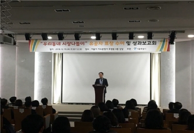 19일 오전 10시 서울시 서소문청사 후생동 강당에서 ‘우리동네 시장나들이 유공자 표창 수여 및 성과보고회’가 열렸다. 이번행사에서는 우리동네 시장나들이 사업에 적극적으로 참여해 그 공로가 인정된 시장상인, 어린이집 교사, 대학 교수, 대학생 등 유공자 25명에게 표창이 수여됐다.