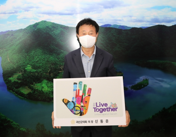[충청뉴스큐] 신동운 괴산군의회 의장이 지난 7일 인종 차별을 반대하는 글로벌 캠페인인 ‘리브 투게더챌린지’에 동참했다.