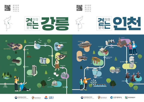 [충청뉴스큐] 한국관광공사는 강릉시, 인천광역시와 함께 지역 비대면 걷기여행 문화 확산을 위해 각 지역 걷기여행 코스 및 관광지 정보를 안내하는 홍보책자 ‘걸어야 보이는 강릉’과 ‘걸어야 보이는 인천’을 최근 제작·배포했다.