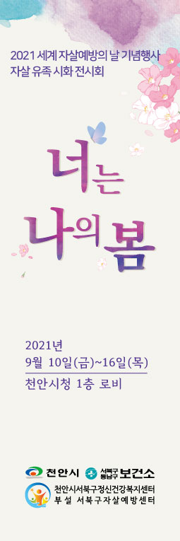 [충청뉴스큐] 천안시와 천안시 서북구정신건강복지센터가 주관하는 유족 추모시화 전시회 ‘너는 나의 봄’이 오는 10일부터 16일까지 천안시청 1층 로비에서 열린다.