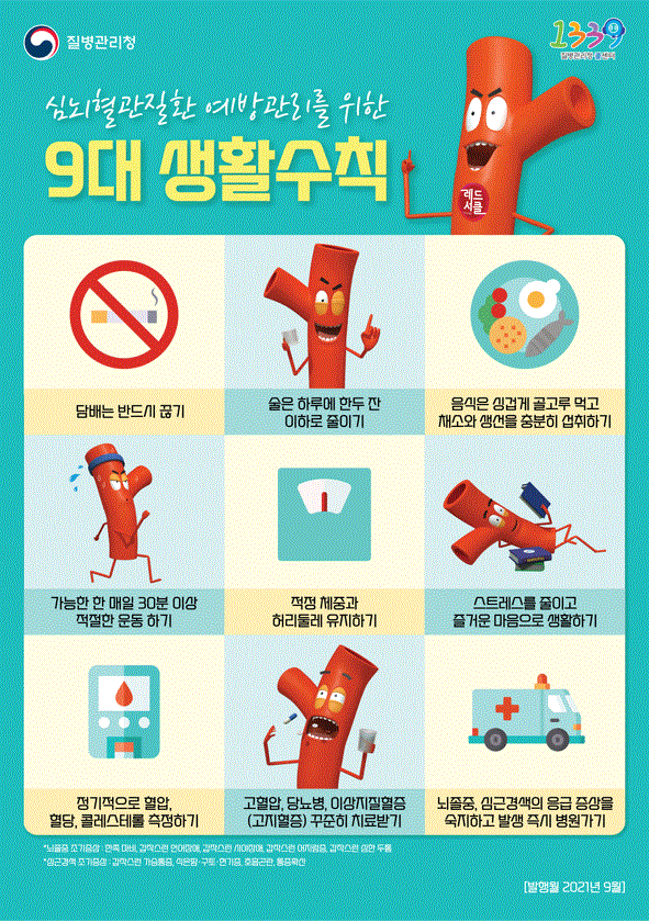 자기 혈관 숫자 알기는 자신의 혈압 · 혈당 · 콜레스테롤 수치를 파악하고 관리해서 건강한 혈관으로 심뇌혈관질환을 예방하자는 의미다.