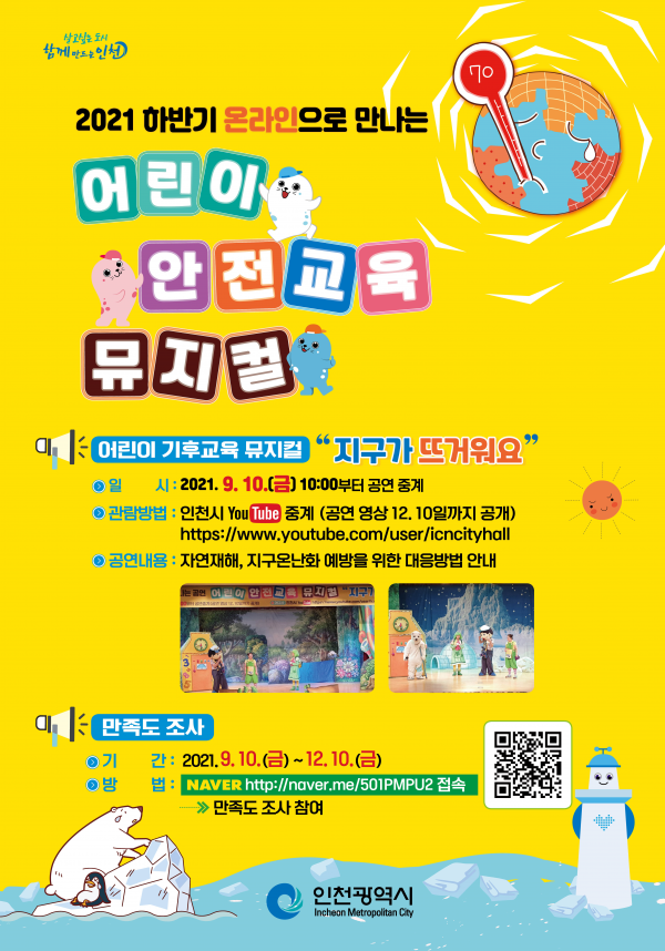인천시는 각종 재난안전사고에 취약한 어린이들이 보다 쉽고 흥미롭게 올바른 행동요령을 익힐 수 있도록 뮤지컬 공연 형식으로 맞춤교육을 기획했다.
