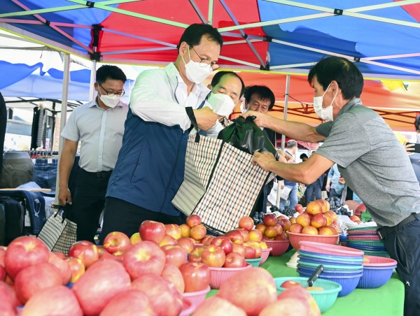 13일 군에 따르면, 이번 장보기 행사는 코로나19로 인한 경기침체와 매출감소 등으로 어려움을 겪고 있는 전통시장 활성화를 위해 마련됐다.