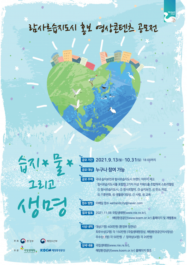 [충청뉴스큐] 환경부 산하 국립생태원은 람사르습지도시에 대한 국민 인식을 높이기 위해 ‘람사르습지도시 홍보 영상 콘텐츠 공모전‘을 개최하고 9월 13일부터 오는 10월 31일까지 작품을 접수한다.