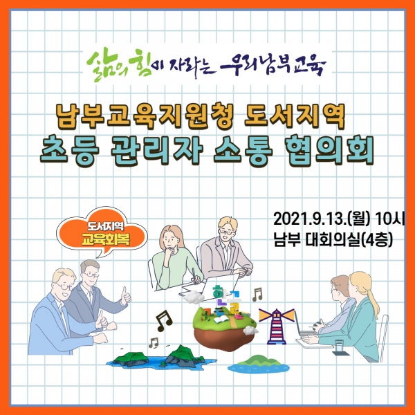 [충청뉴스큐] 인천남부교육지원청은 13일 2021학년도 ‘모든 학생을 위한 교육회복’을 지원하기 위한 ‘남부 도서지역 초등 관리자 소통 협의회’를 개최했다.