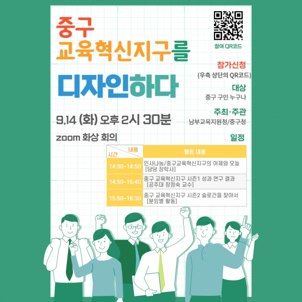 ‘중구 교육혁신지구를 디자인하다’라는 주제로 개최되는 이번 행사는 중구 교육혁신지구 시즌1의 성과를 공유하고 내년부터 시작될 시즌2의 비전을 함께 만들기 위해 마련됐다.