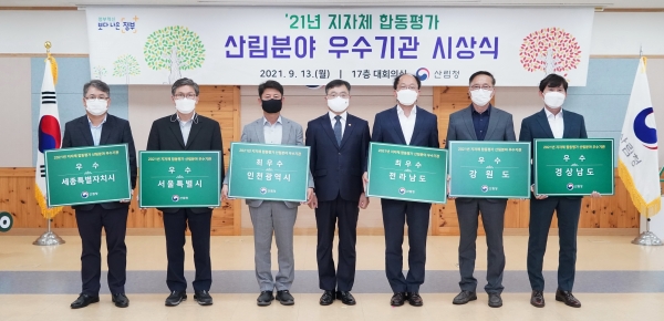 우수기관의 선정을 2021년 행정안전부의 지자체 합동평가 결과 중 산림분야 실적을 비교해 특·광역시와 도 두그룹으로 구분해 최우수기관에는 인천광역시와 전라남도, 우수기관에는 서울특별시, 세종특별자치시, 강원도, 경상남도가 선정됐다.