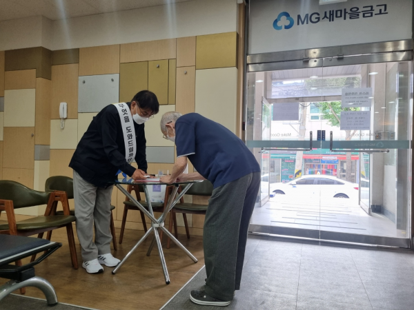 어르신들이 근무복을 착용하고 새마을금고 등 관내 금융기관에서 내방객 안내 및 공과금 납부를 지원하는 ‘시니어금융지원단’으로 만족도가 상당히 높다.