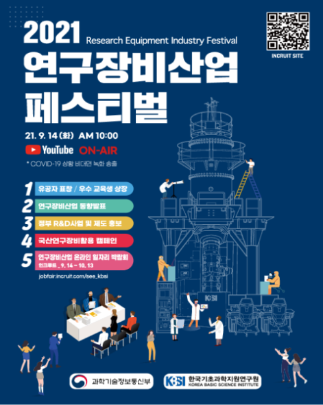 [충청뉴스큐] 과학기술정보통신부는 연구장비산업 활성화를 위한 소통의 장 마련을 위해 9월 14일부터 10월 13일까지 ‘2021 연구장비산업 페스티벌’을 온라인으로 개최한다고 밝혔다.