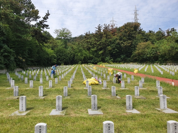 [충청뉴스큐] 군산시는 민족 고유 명절인 추석을 맞아 호국영령을 추모하고 선열들의 애국정신을 기리기 위해 나운동 소재 군경합동묘지 제초작업을 실시했다고 15일 밝혔다.