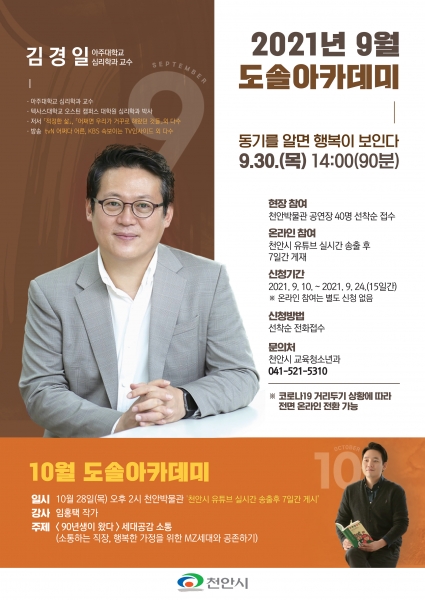 강연은 강연 당일 실시간으로 천안시 유튜브에 송출되며 10월 6일까지 다시보기 시청도 할 수 있다.