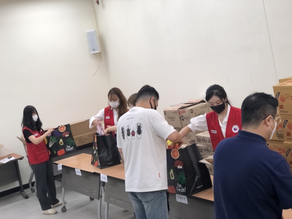 꾸러미 제작을 위한 작업장은 방역소독을 실시하고 자원봉사자들은 마스크 쓰기와 개인소독을 철저히 했으며 단국대학교 생명공학대학 한울학생회와 천안시복지재단 직원들이 참여했다.