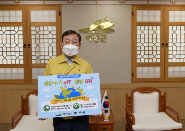 [충청뉴스큐] 황선봉 예산군수가 생활 속 에너지 절약으로 깨끗한 지구를 만드는 ‘냉온수기 OFF 환경 ON’ 챌린지에 동참했다.
