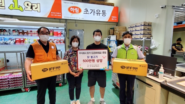 [충청뉴스큐] 천안시 자원봉사센터는 주식회사 초가가 지난 15일 다가오는 추석명절을 맞아 500만원 상당 닭불고기를 소외계층을 위해 후원했다고 밝혔다.