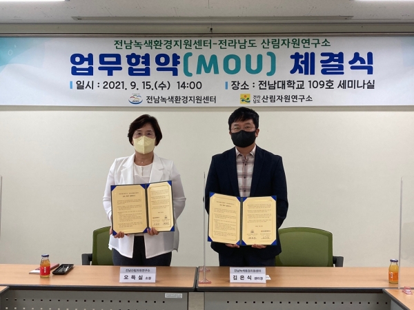 [충청뉴스큐] 전남산림자원연구소는 탄소중립 실현 연구를 본격 추진하기 위해 전남녹색환경지원센터와 업무협약을 했다고 밝혔다.