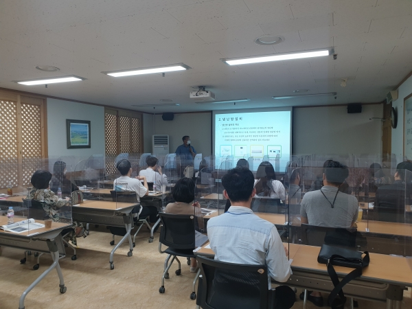 이상선 주무관은 기계소방설비 구조를 이해할 수 있도록 현장사진 및 동영상 등을 활용해 연수대상자의 이해도를 높였다.
