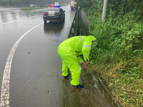 이에 따라 도로 침수, 교통안전시설물 피해 대비 응급복구 및 구조장비를 사전 점검해 순찰차에 탑재했다.