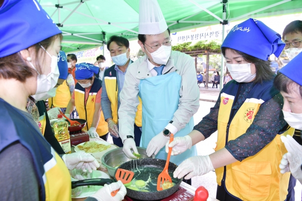 이 시장과 자원봉사자들은 소외계층 200여세대를 위한 모듬전, 밑반찬을 만든 후 직접 세대를 찾아 전달하고 생활 안부를 확인하는 등 사회 안전망도 동시에 점검했다.