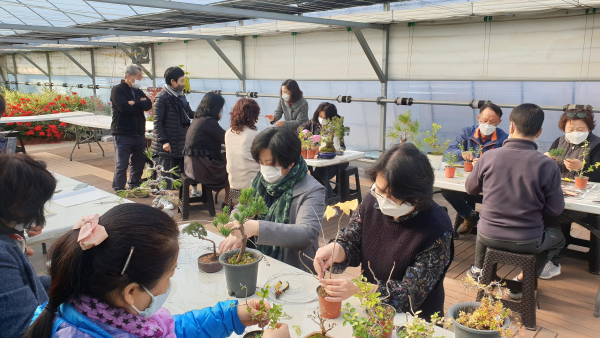 교육은 6회에 걸쳐 진행되며 내용은 국화분재 작품 만들기 이론 및 실습으로 구성된다.