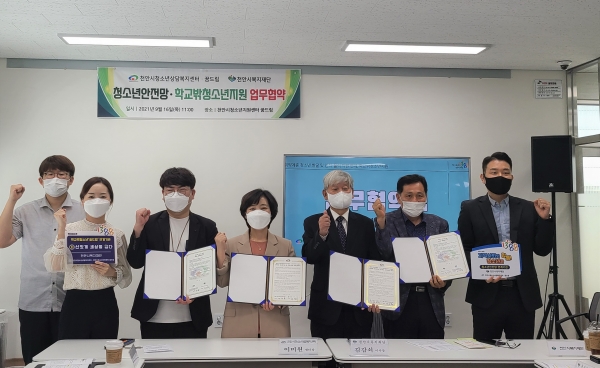 [충청뉴스큐] 천안시청소년상담복지센터 꿈드림과 천안시복지재단이 지난 16일 업무협약을 체결해 취약계층 청소년 발굴과 맞춤형 서비스 지원에 나선다고 24일 밝혔다.