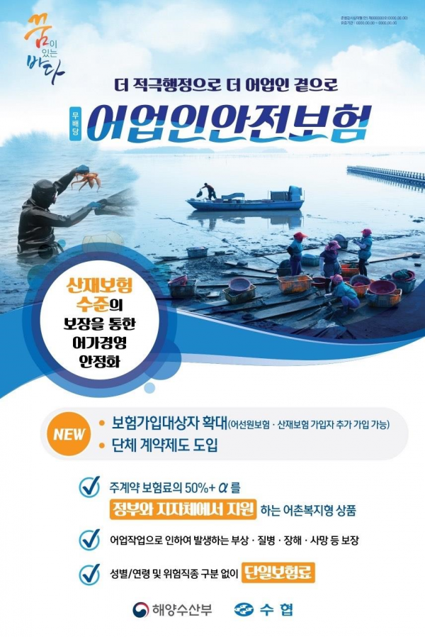 [충청뉴스큐] 해양수산부는 어선원보험에 가입되어 있는 어선원도 추가로 가입할 수 있는 어업인안전보험 상품을 출시하고 오는 10월 1일부터 판매한다고 밝혔다.