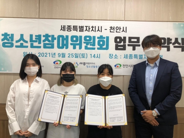 이번 협약에 따라 양 참여위원회는 천안시와 세종특별자치시 청소년들 지역사회 참여 활동 활성화를 주도하고 청소년 참여 문화 조성을 위해 상호 협력하기로 했다.